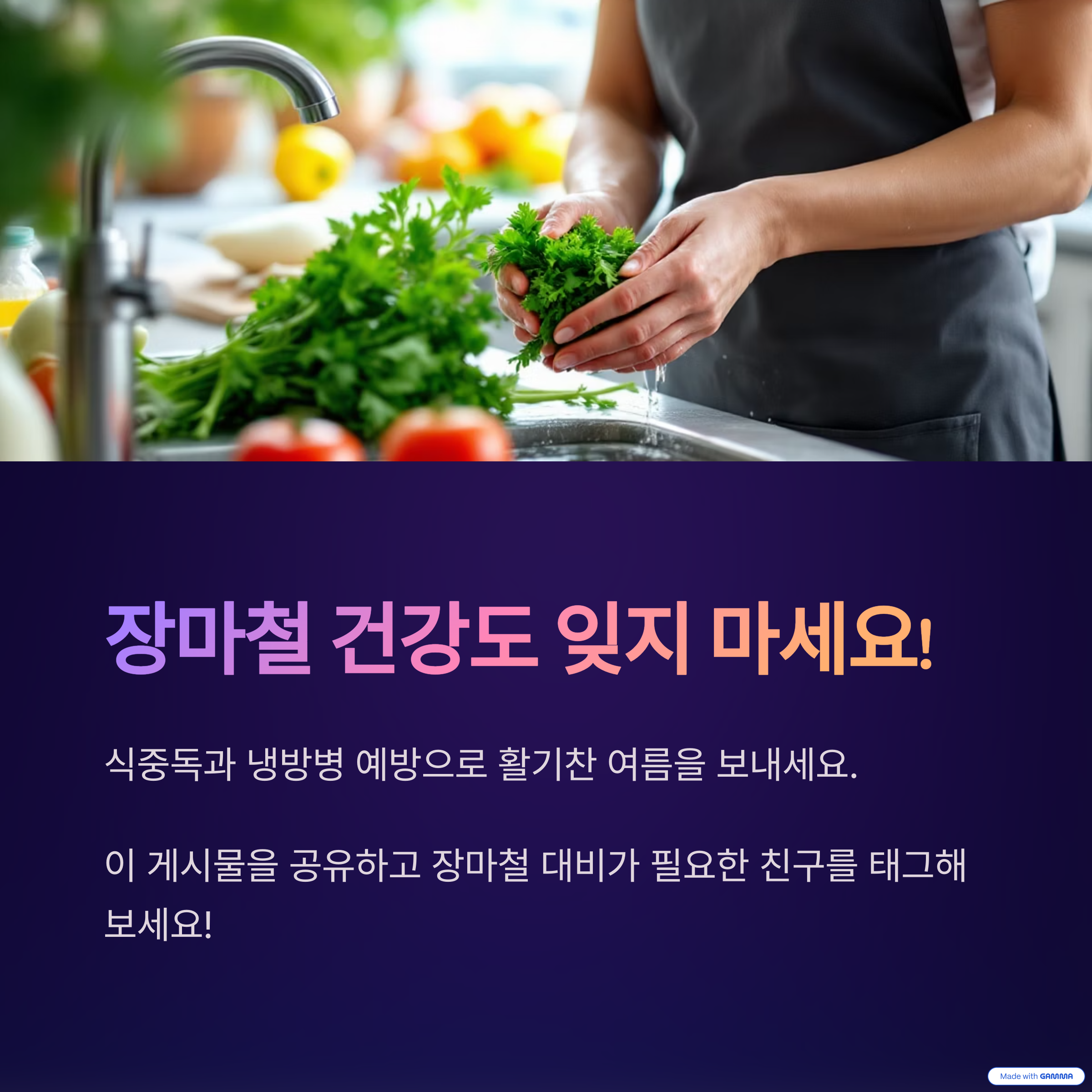 장마철에는 특히 식중독이나 냉방병에 주의해야 해요.